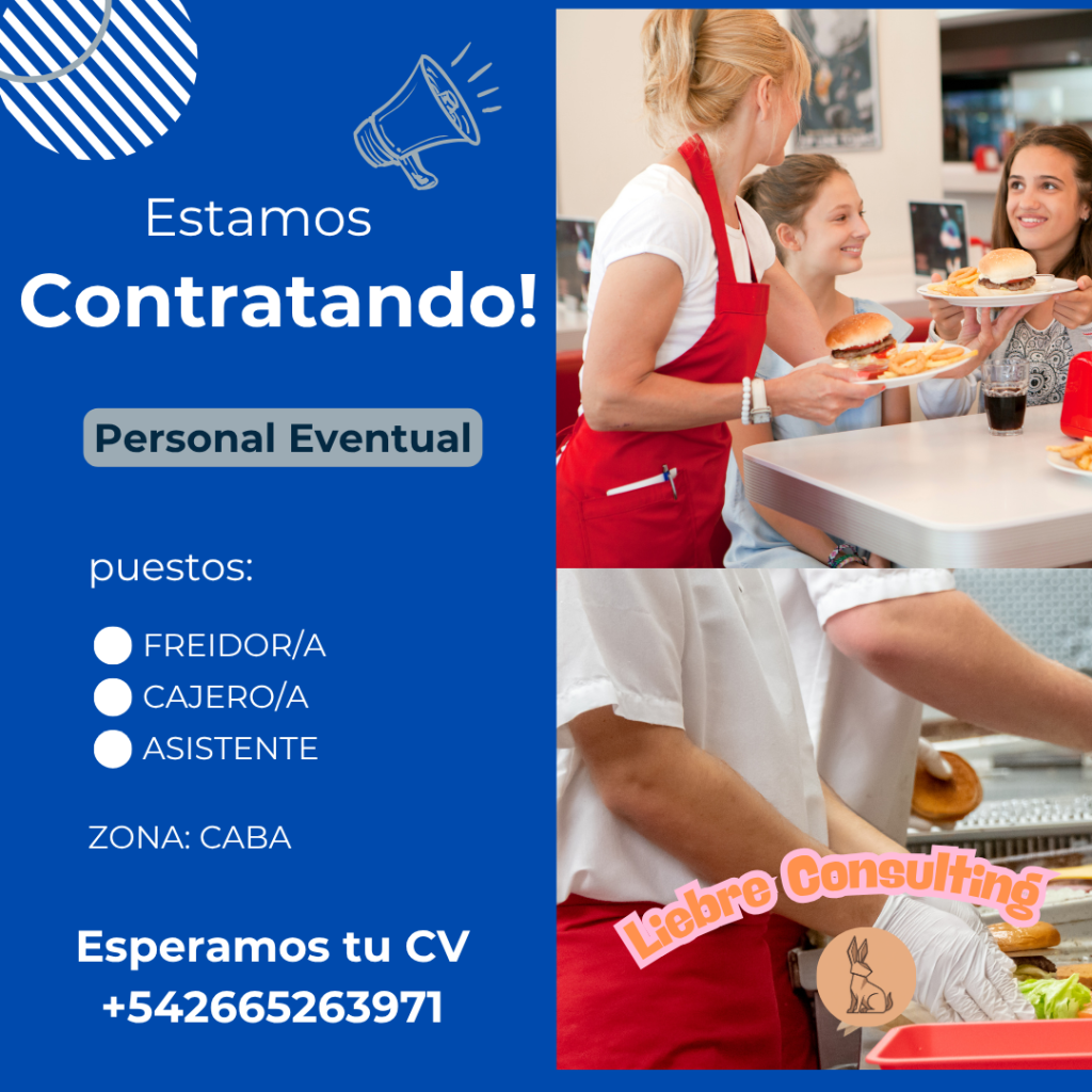 Freidor: manejo de freidora y panchera, control de frituras, stock, armado de descartables y reposición de heladeras.