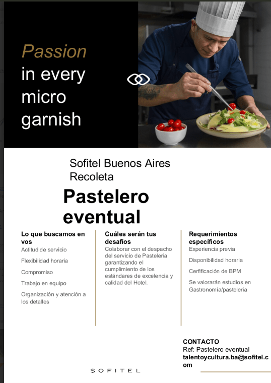 Contacto: REF: PASTELERO EVENTUAL talentoycultura.ba@sofitel.com