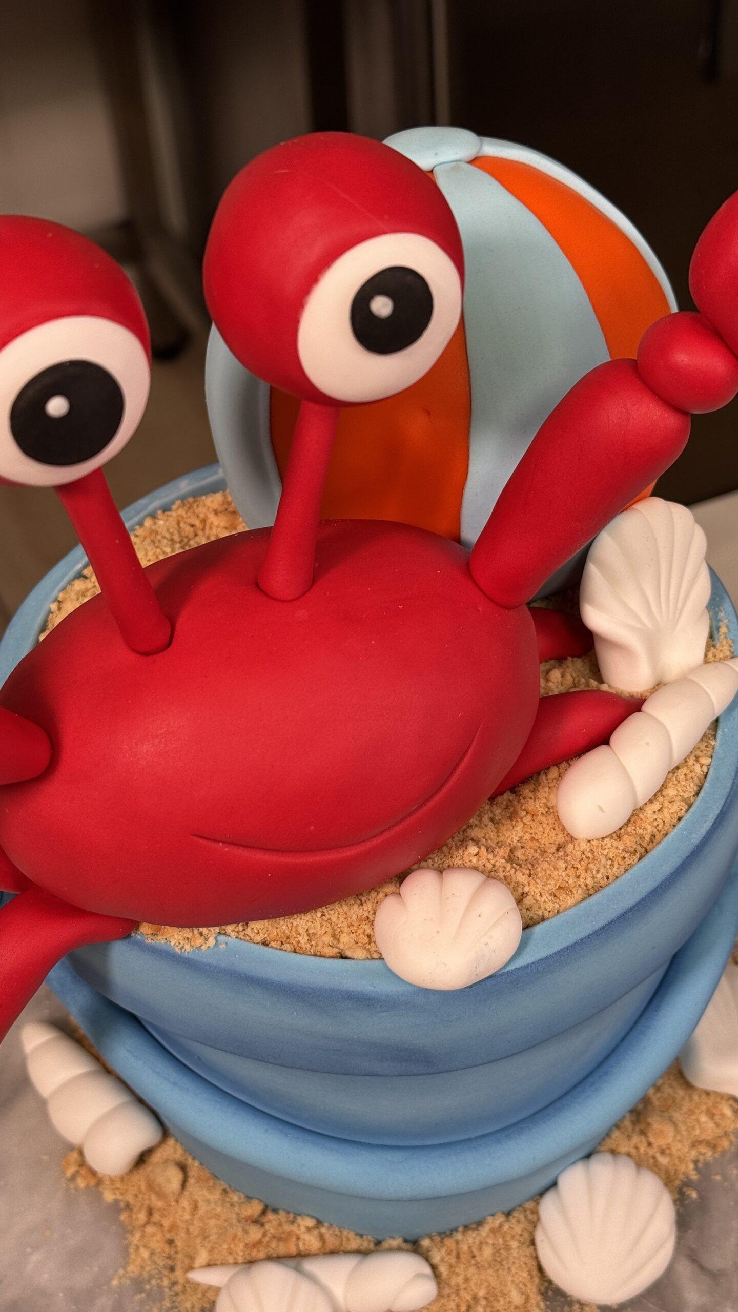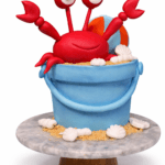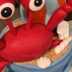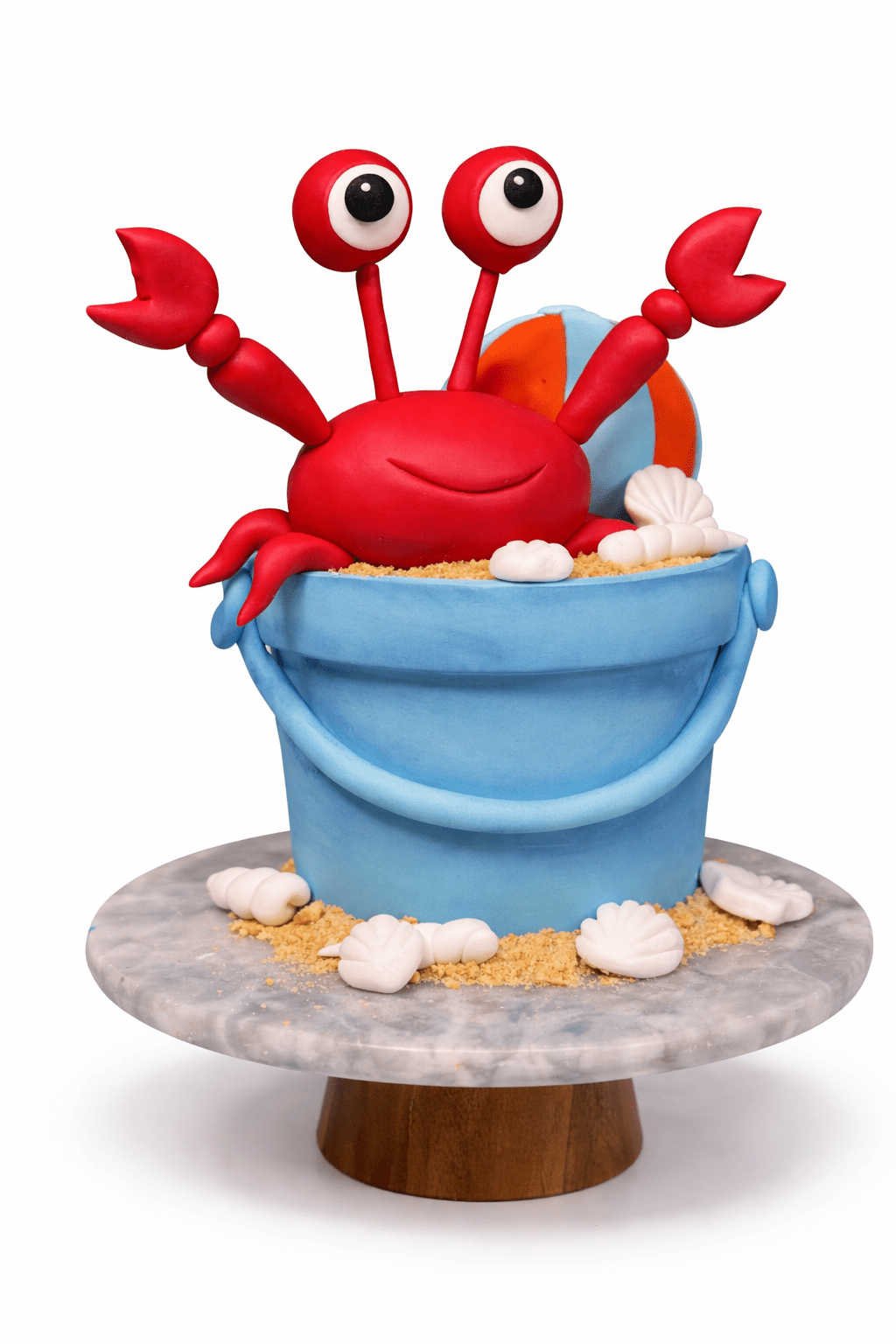 Esta técnica se observa claramente en tortas como la del gato, el cangrejo y los diseños infantiles, donde el acabado es uniforme y sin marcas.