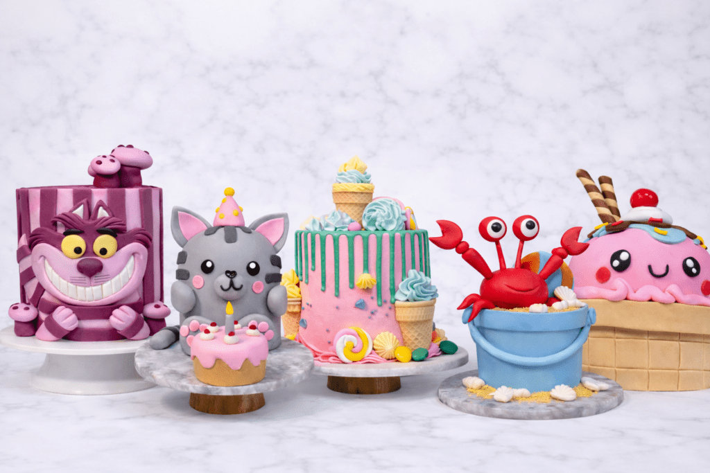 Las tortas del curso trabajan fuertemente el modelado 3D, logrando figuras simpáticas, equilibradas y visualmente atractivas, ideales para tortas infantiles y temáticas.